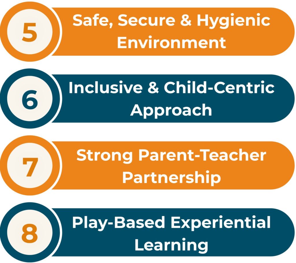 Our approach is play-based and experiential, focusing on learning through fun activities, stories, art, music, and exploration. We ensure every child develops academically, socially, and emotionally.
